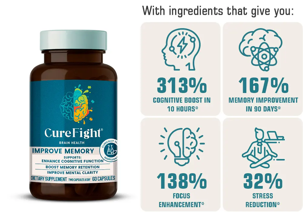 CureFight® is a dietary supplement designed to support brain health, potentially improving focus, memory, and cognitive function. It uses a natural ingredient formula to promote mental clarity and energy, suitable for adults looking to maintain or enhance cognitive performance.